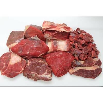 Unser Paket für Sie besteht aus Beinscheibe, Braten, Suppenfleisch, Steak, Rouladen, Knochen, Hackfleisch, Gulasch - kann leicht variieren